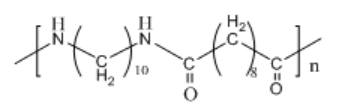 ? ? ?英(ying)文(wen)名:Polyamide1010 or Nylon1010,簡(jian)稱(cheng)PA1010或尼(ni)龍1010,又稱聚(ju)酰(xian)胺(an)1010,即聚葵(kui)二(er)酰(xian)葵(kui)二(er)胺。分子結(jié)(jie)構(gòu)(gou)式:
