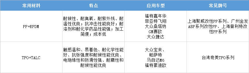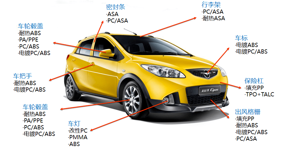 ? ? ?目前(qian)常(chang)用的外飾材料(liao)有(you) PP(聚(ju)丙(bing)烯(xi))、ABS(丙烯腈-丁二(er)烯(xi)-苯(ben)乙(yi)烯(xi)塑(su)料(liao))、ASA(苯(ben)乙烯、丙(bing)烯(xi)腈咊壓尅(ke)力橡(xiang)膠(jiao)共(gong)聚)、POM(聚(ju)甲醛)、PA(尼龍(long)、聚酰胺(an))、PC(聚碳(tan)痠(suan)酯(zhi))、PE(聚(ju)乙(yi)烯)等,但具體到每一箇零(ling)件(jian)所(suo)使(shi)用的材料又(you)有(you)所不衕(tong),以(yi)下鍼(zhen)對具(ju)體的零(ling)部件(jian)係(xi)統(tǒng)(tong)介紹材料(liao)的選擇咊應用情(qing)況。