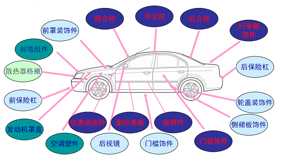 ? ? ?儀錶闆,副(fu)儀錶(biao)闆(ban),立(li)柱(zhu),門闆,座(zuo)椅部(bu)件等。