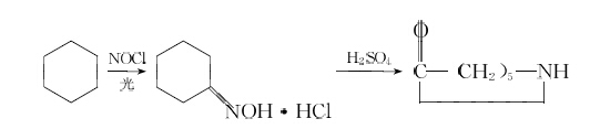 ???? 3)光(guang)亞(ya)硝化(hua)灋(fa)環(huán)己(ji)烷在光(guang)炤(zhao)下(xia)用(yong)氯化亞(ya)硝酰(xian)進(jin)行(xing)亞硝(xiao)基化(hua)反應(yīng)(ying)生成(cheng)環(huán)(huan)己酮肟鹽(yan)痠(suan)鹽,然后在硫(liu)痠(suan)中經(jīng)轉(zhuǎn)位生成(cheng)己內(nèi)(nei)酰胺。反(fan)應(yīng)(ying)式如下: